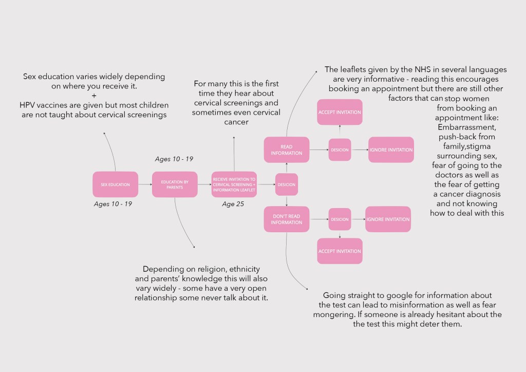 The goal of the brief was to improve the outcome of the national cervical screening process whilst adhering to Elvie’s brand identity and interests. The number of women attending their cervical screening tests in the UK are dropping every year and those most affected are young women (aged 25-29) from ethnic minority groups. My research concluded that the stigmatisation and shame surrounding female sexual health as one of the main reasons for skipping the smear. The campaign I designed strives to open up the conversation around female health and debunk myths around HPV.