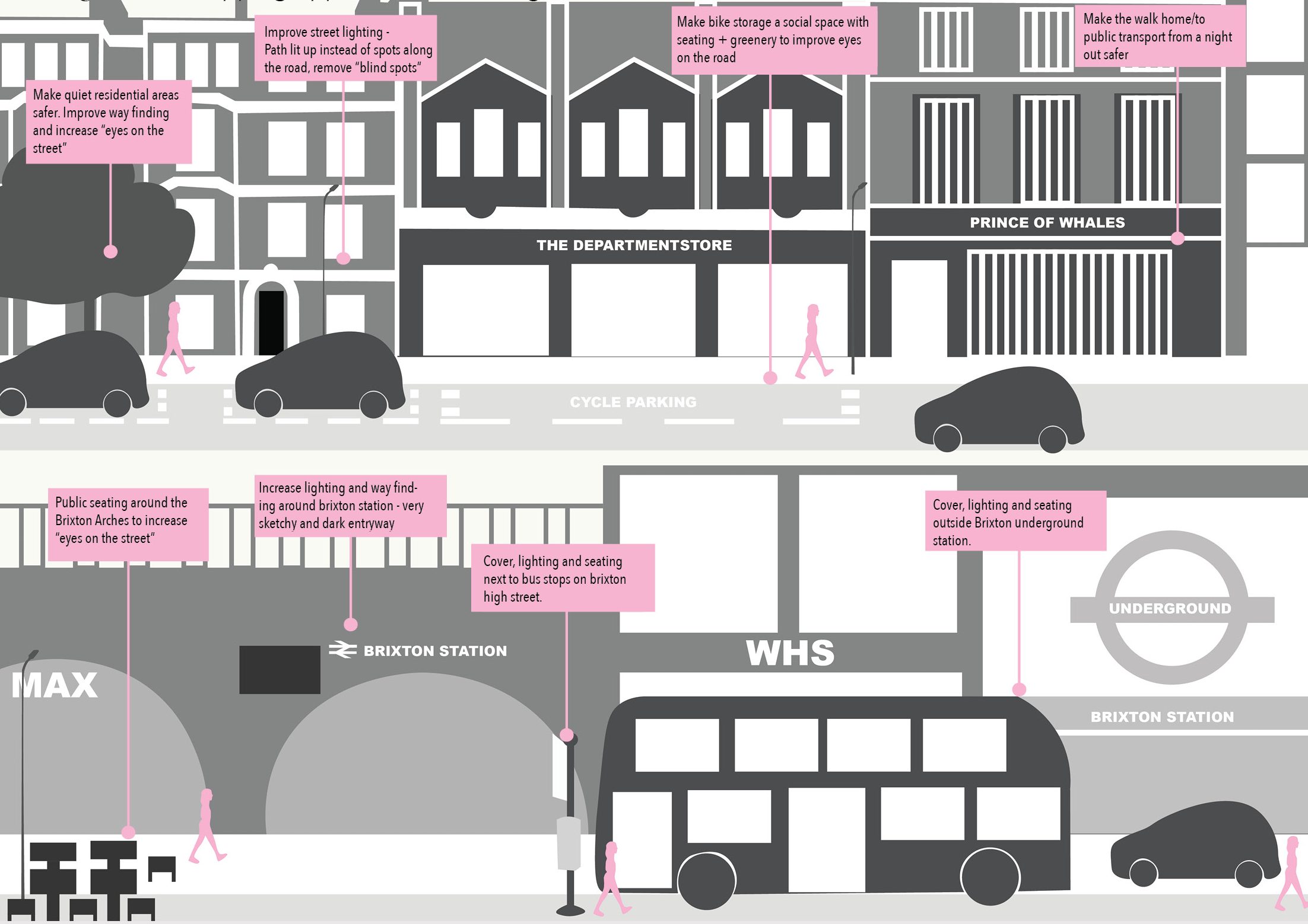 The goal of the brief was to design an object that fit within Lambeth Council’s new “Kerbside Strategy” – an initiative that would turn kerbside car parking into more sustainable and social uses and thereby also reduce car traffic in south London. A negative side effect of low traffic neighbourhoods is the decreased feeling of safety at night, especially for women who might not feel they can move freely. My lighting concept is designed to deter criminal activity by keeping low traffic roads well lit at night making the Council’s new project safer for women.